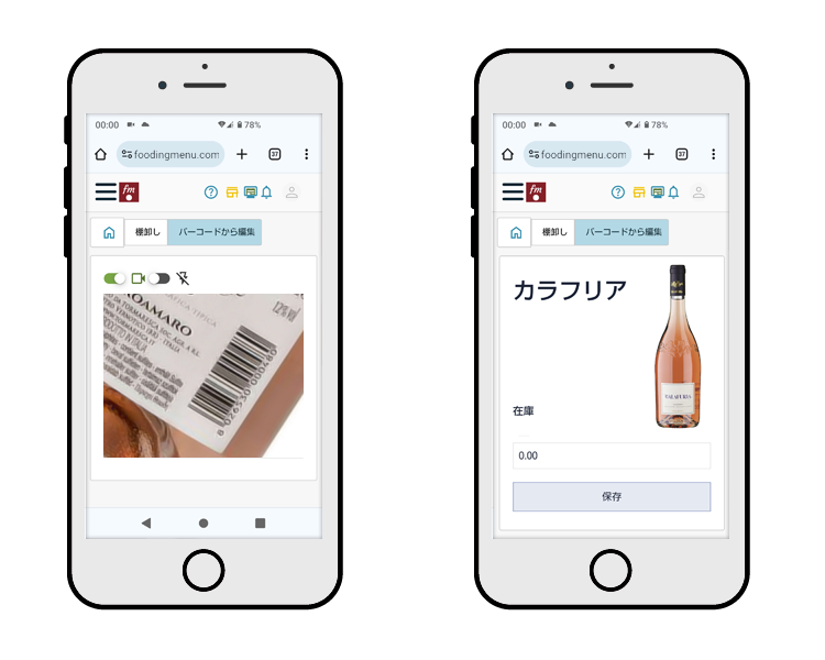 棚卸食材を入力する際にカメラでバーコードを読み込むことで素早く入力可能です。